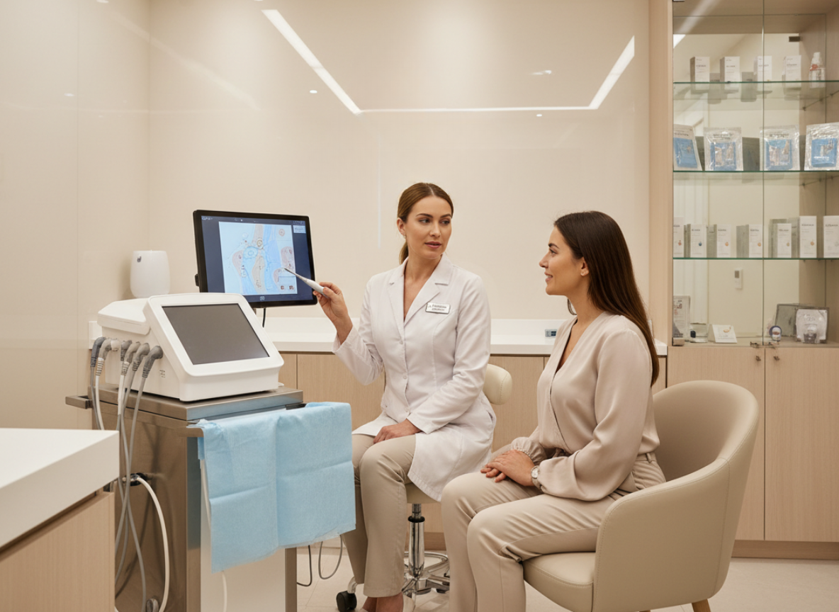 RF Microneedling is a minimally invasive procedure that uses fine needles combined with radiofrequency energy to penetrate the deeper layers of the skin. This process stimulates collagen and elastin production, improving skin firmness, texture, and overall tone.